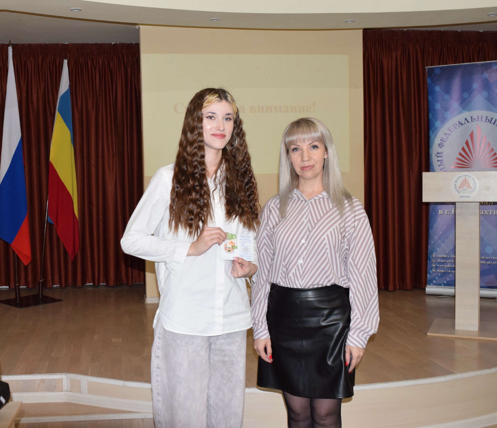 В филиале ЮФУ в г.Новошахтинске состоялось торжественное награждение студентов, которые стали обладателями почетных золотых, серебряных и бронзовых знаков отличия Всероссийского физкультурно-спортивного комплекса «Готов к труду и обороне».