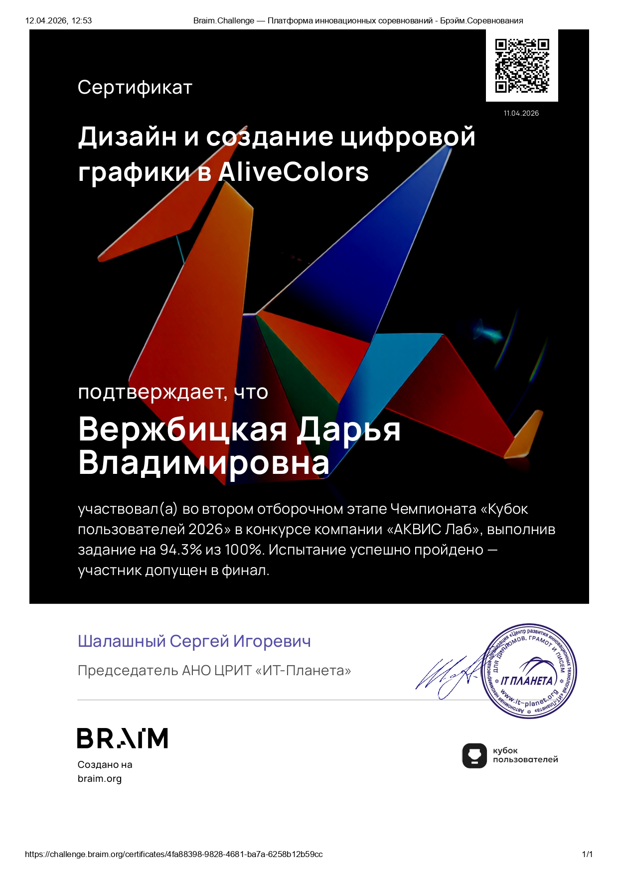 Даша заняла 2 место в двух номинациях: «Дизайн и создание цифровой графики в AliveColors» и «Визуализация идей и проектов на онлайн-доске «Эсборд»». Артур 8 место в номинации «Мастерство промптов: работа с текстом в российских нейросетях».